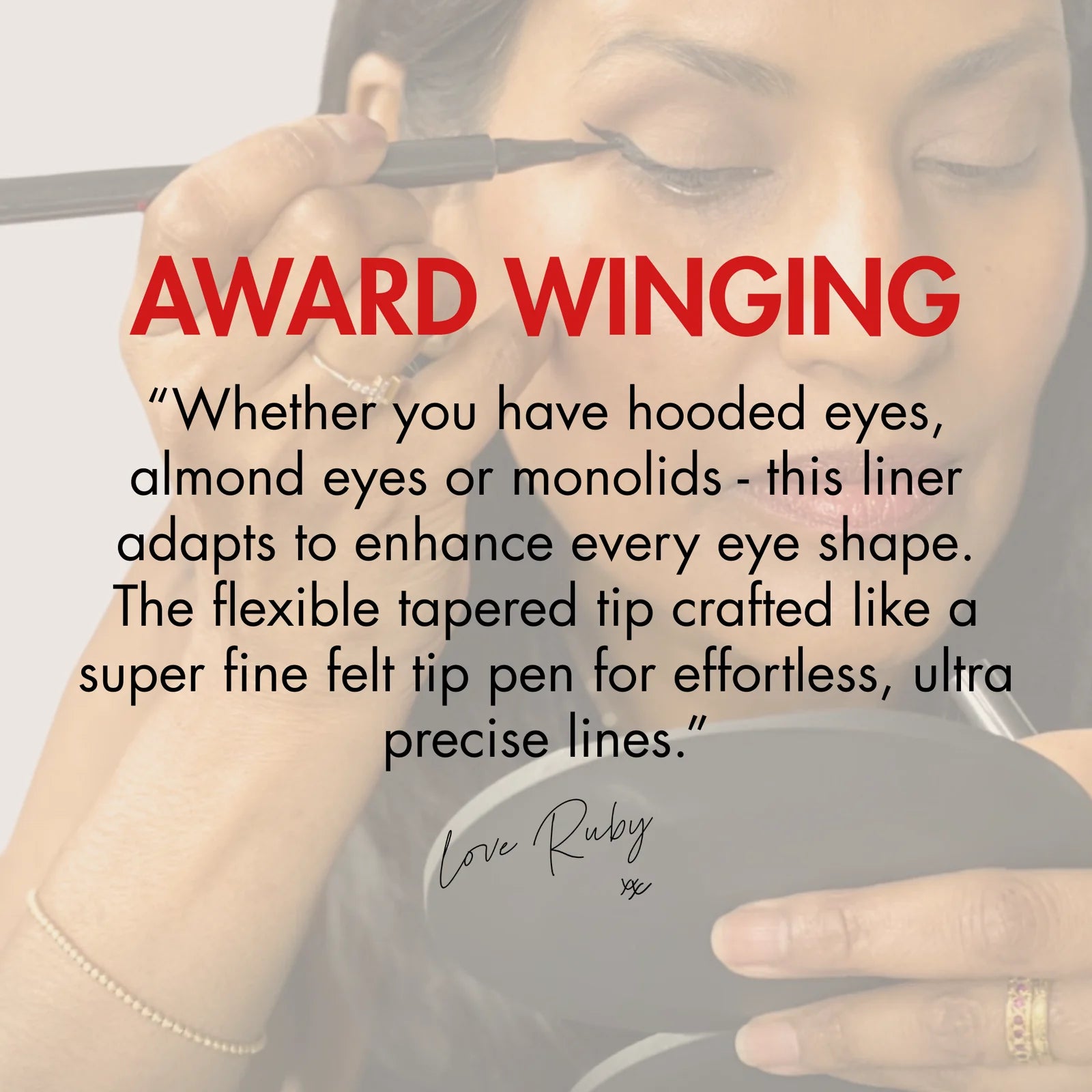 Expertly designed with a flexible yet ultra-fine tip, this liner offers the fluidity of a brush with the control of a pen. The result? Total precision with zero drag. The rich, deep-black pigment dries quickly to a soft matte finish that’s smudge-resistant and designed to last from morning to midnight.