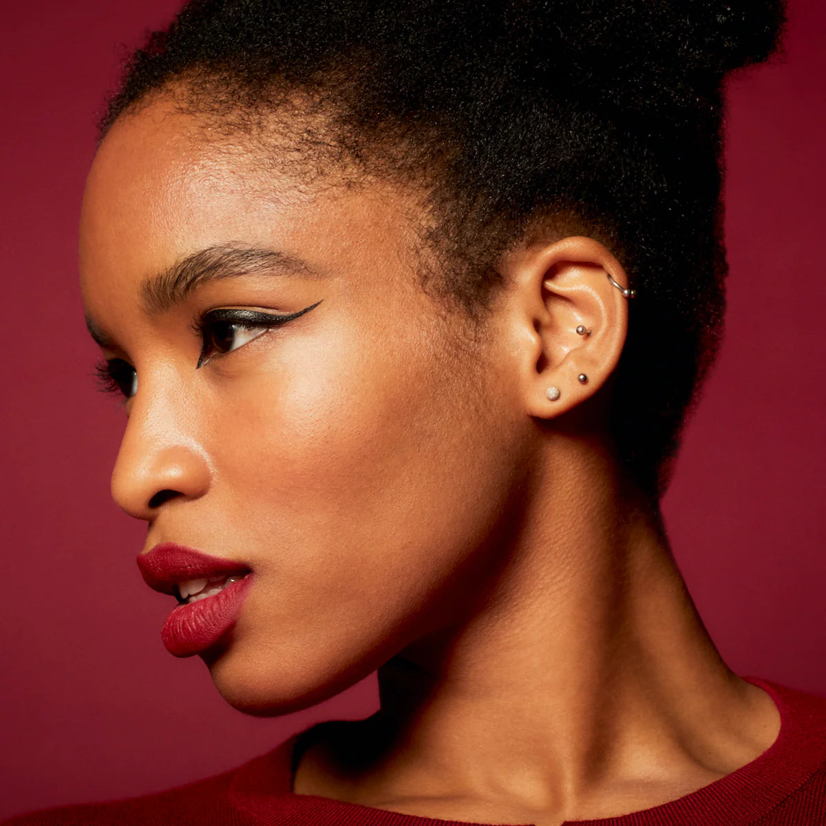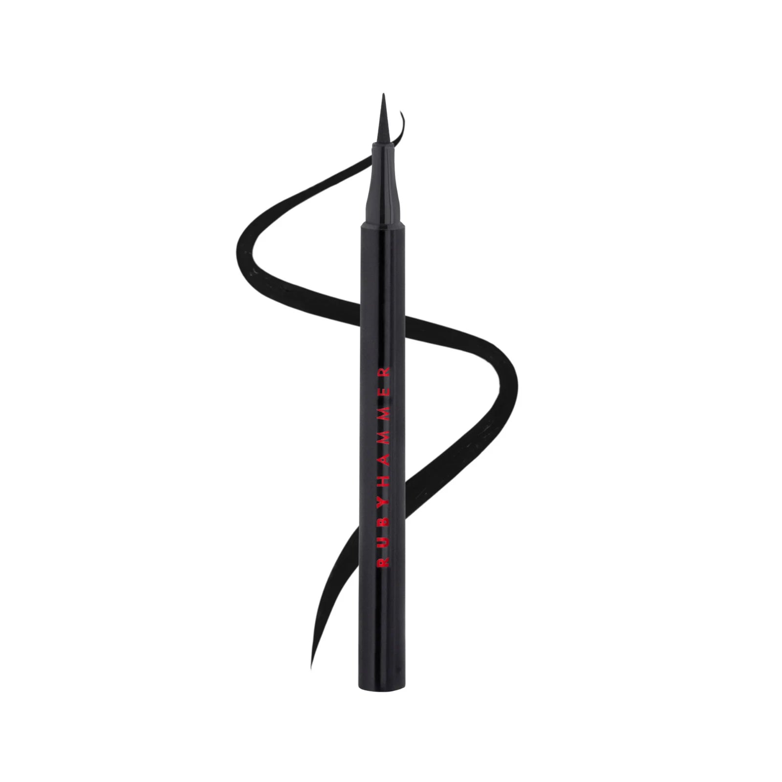 The Ruby Hammer Precision Liquid Eyeliner is your go-to tool for creating crisp, controlled definition—whether you’re tracing the lash line or mastering a graphic flick.